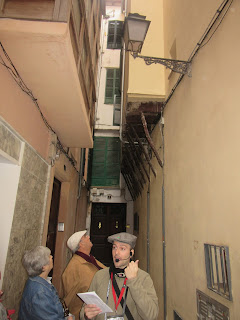 | Albert Bouzas ens mostrà un dels pocs elements que resten de la Palma del segle XV al carrer de la Impremta d'en Gelabert. |